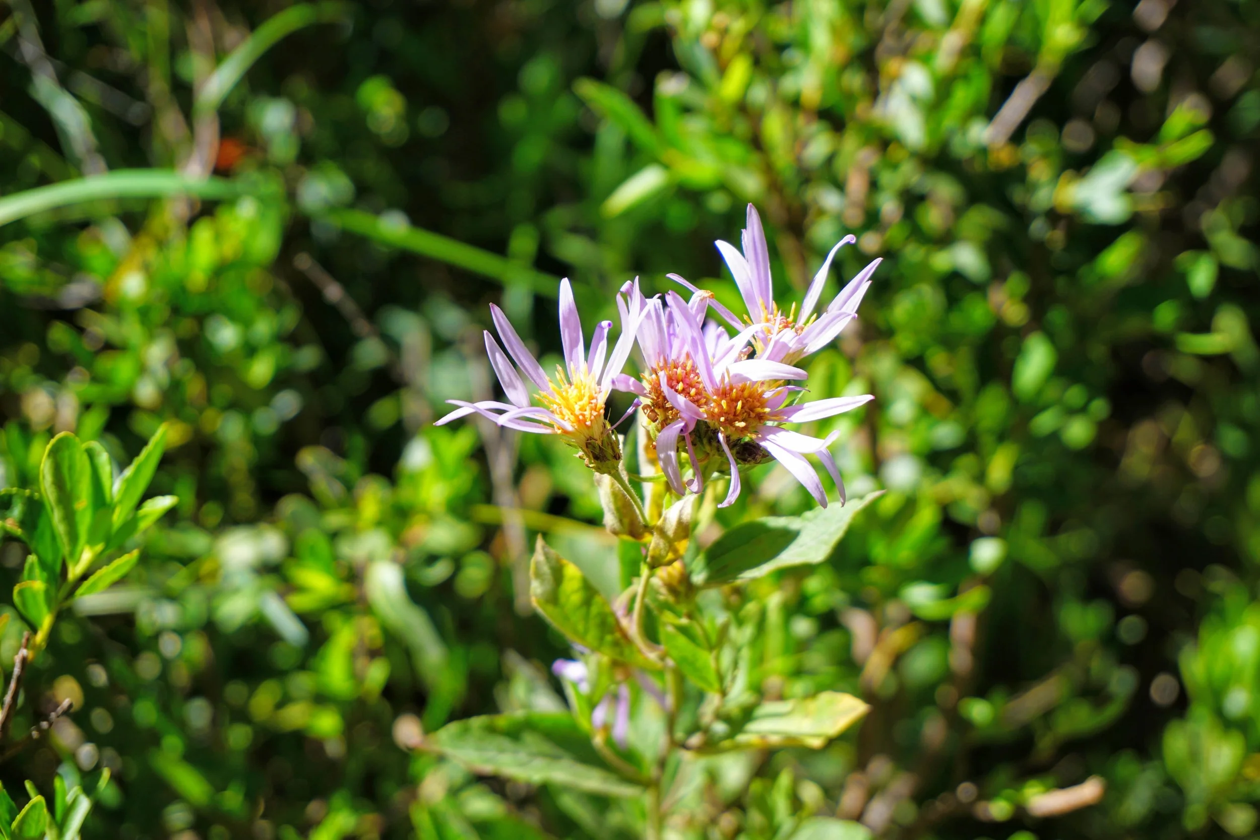 The trail from the parking lot follows along a ridge. The land slopes up to your left and down to your right. The trail was seeing plenty of traffic on this warm, clear Saturday, so making room on this sometimes narrow path was tricky. This time of year there is an abundance of wildflower blossoms. Butterflies were flitting all about enjoying the colorful bowls of nectar the flowers offered up. Looking up there was still mist swirling about the upper elevations, but that was to quickly burn off as the day warmed.