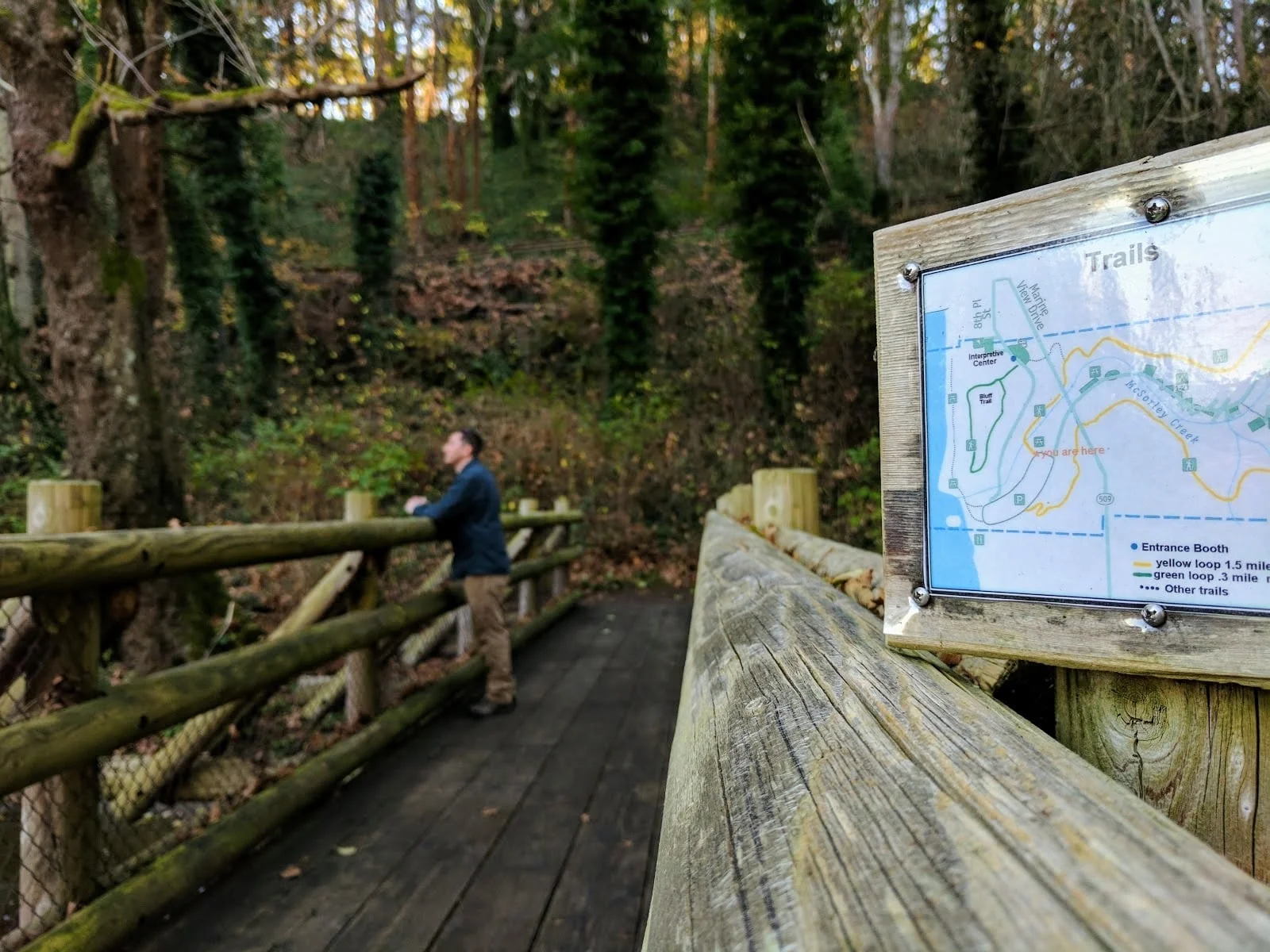 Saltwater State Park is located halfway between Seattle and Tacoma, in the city of Des Moines, Washington. When the park was dedicated in 1926 the two cities symbolically buried a hatchet within the park to end bad feelings between them. The majority of the park was built in the 1930s by the Civilian Conservation Corp (CCC). Throughout the park there are signs describing the CCC's work. Though air traffic from nearby SeaTac Airport is pretty constant, this remains one of the most popular parks within the Puget Sound region.